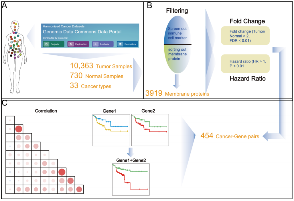 综上,研究团队揭示了一些潜在的肿瘤特异性表面蛋白,可用于合理设计基于TSA(Tumor Surface Antigen)的免疫疗法。这些发现可能为在前临床动物研究和临床实践中利用肿瘤特异性表面蛋白作为多靶点结合位点构建新型CAR-T细胞和ADC铺平了道路。