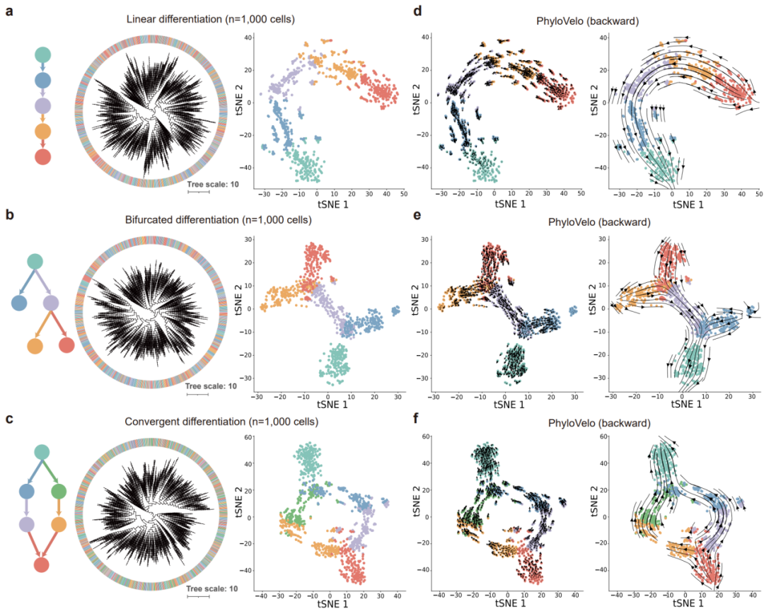 图2 | PhyloVelo准确推断仿真数据中的细胞分化轨迹
