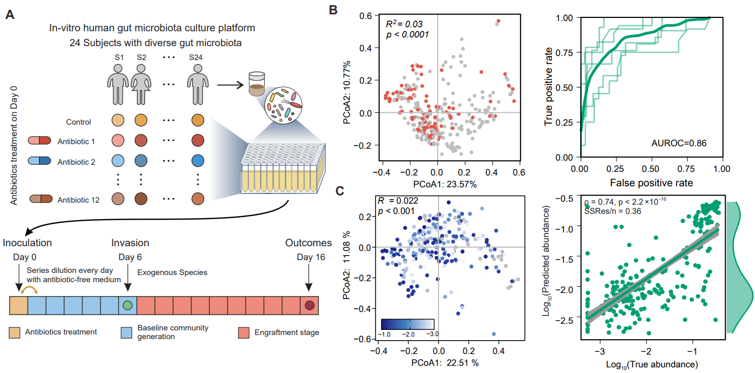 图2. 对于来自不同个体的肠道菌群,召开外源物种的定殖实验并对实验结果进行预测。