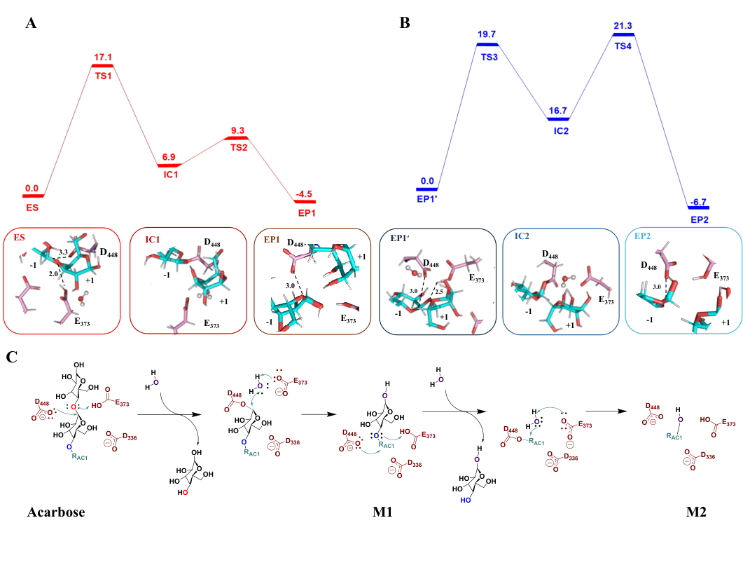 图5. Apg催化阿卡波糖水解反应的两步过程