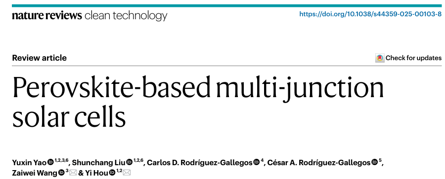 Nature Reviews Clean Technology ∣钙钛矿基多结太阳能电池